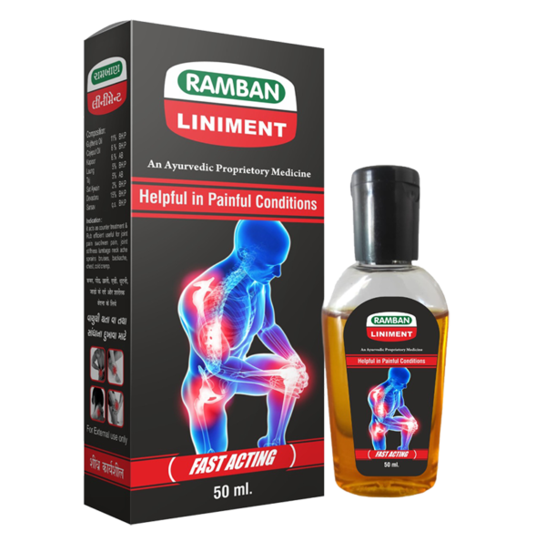 RAMBAN LINIMENT is an Ayurvedic Composition prepared from Herbal ingredients. Using it for massage OF RAMBAN LINIMENT relieving pain and stiffness in NECK ,joints ,SHOULDER, back, LEG and muscles. It helps in BACK ACHE , strains ,sprains.